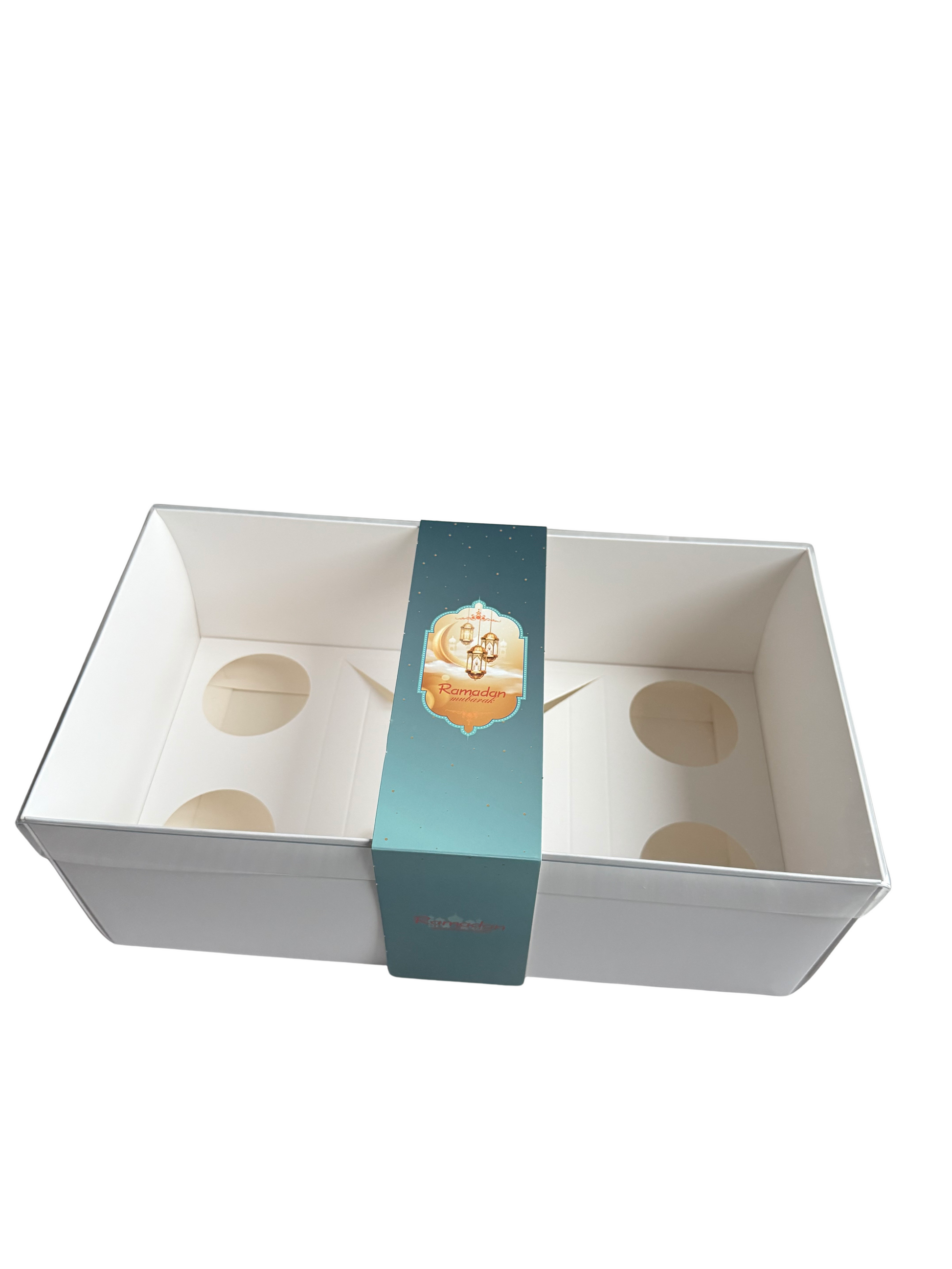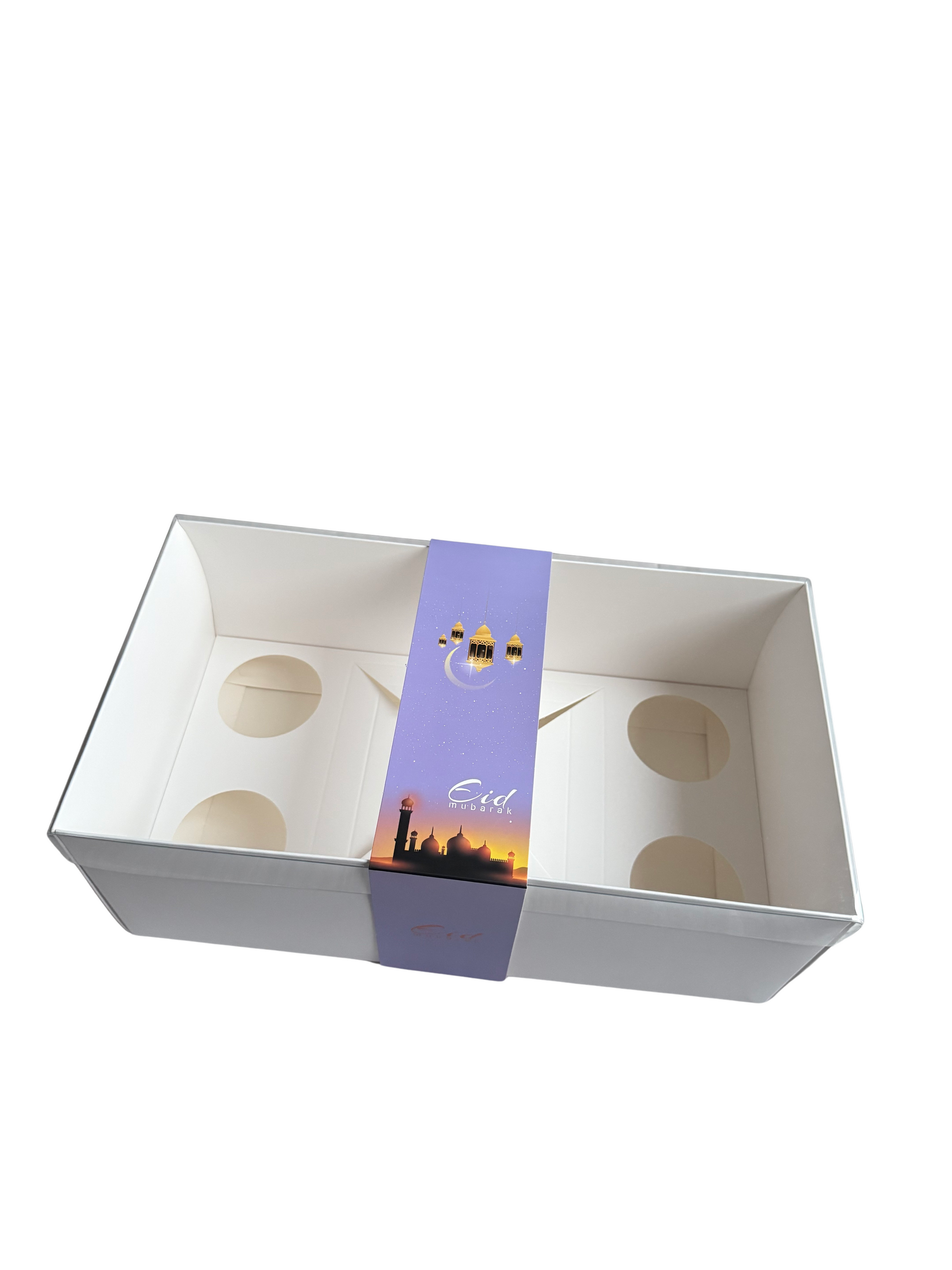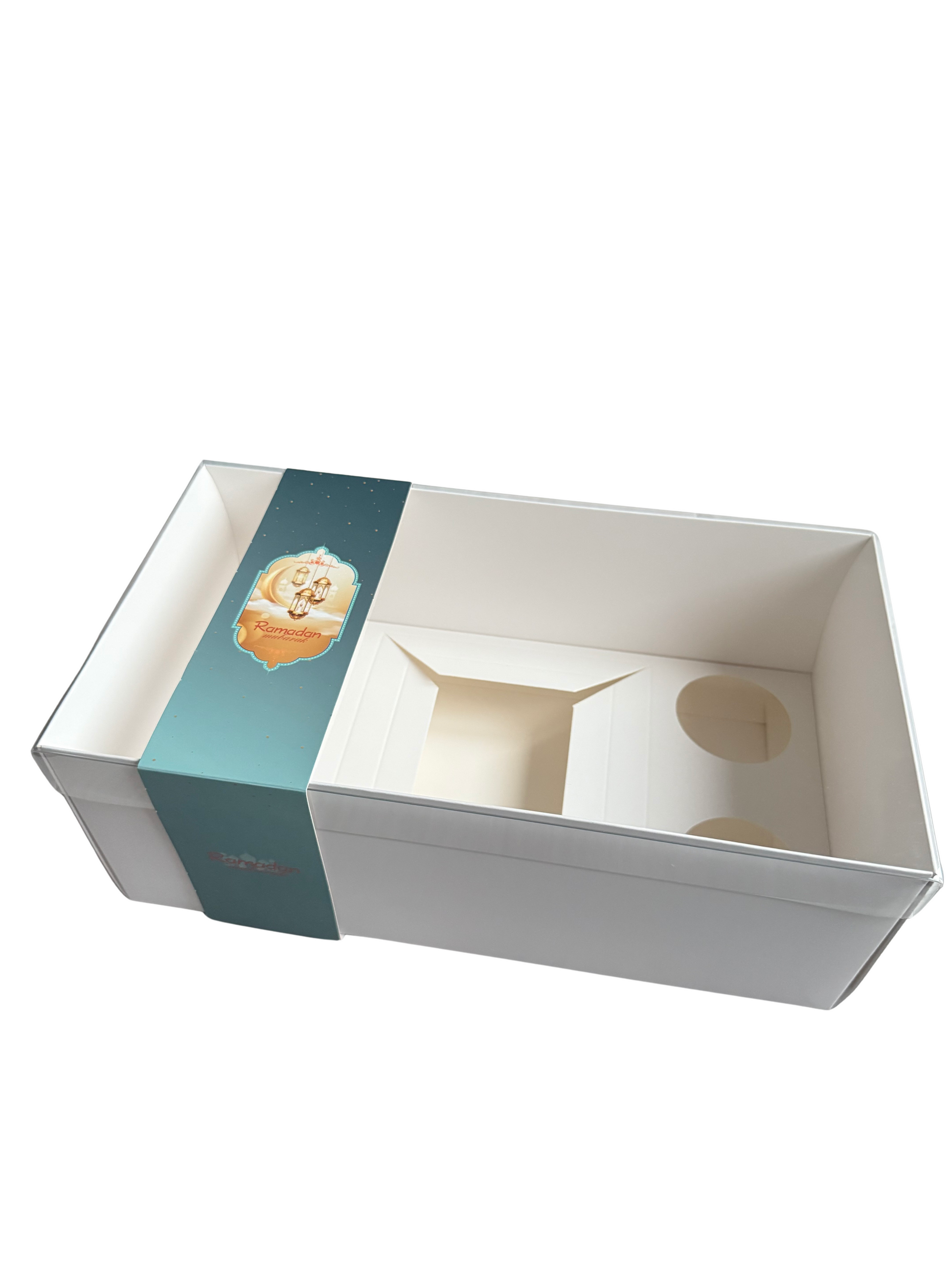 4-Hole Clear Lid Bento Box With Ramadan/Eid Sleeve – Premium Dessert Packaging in White or Gold