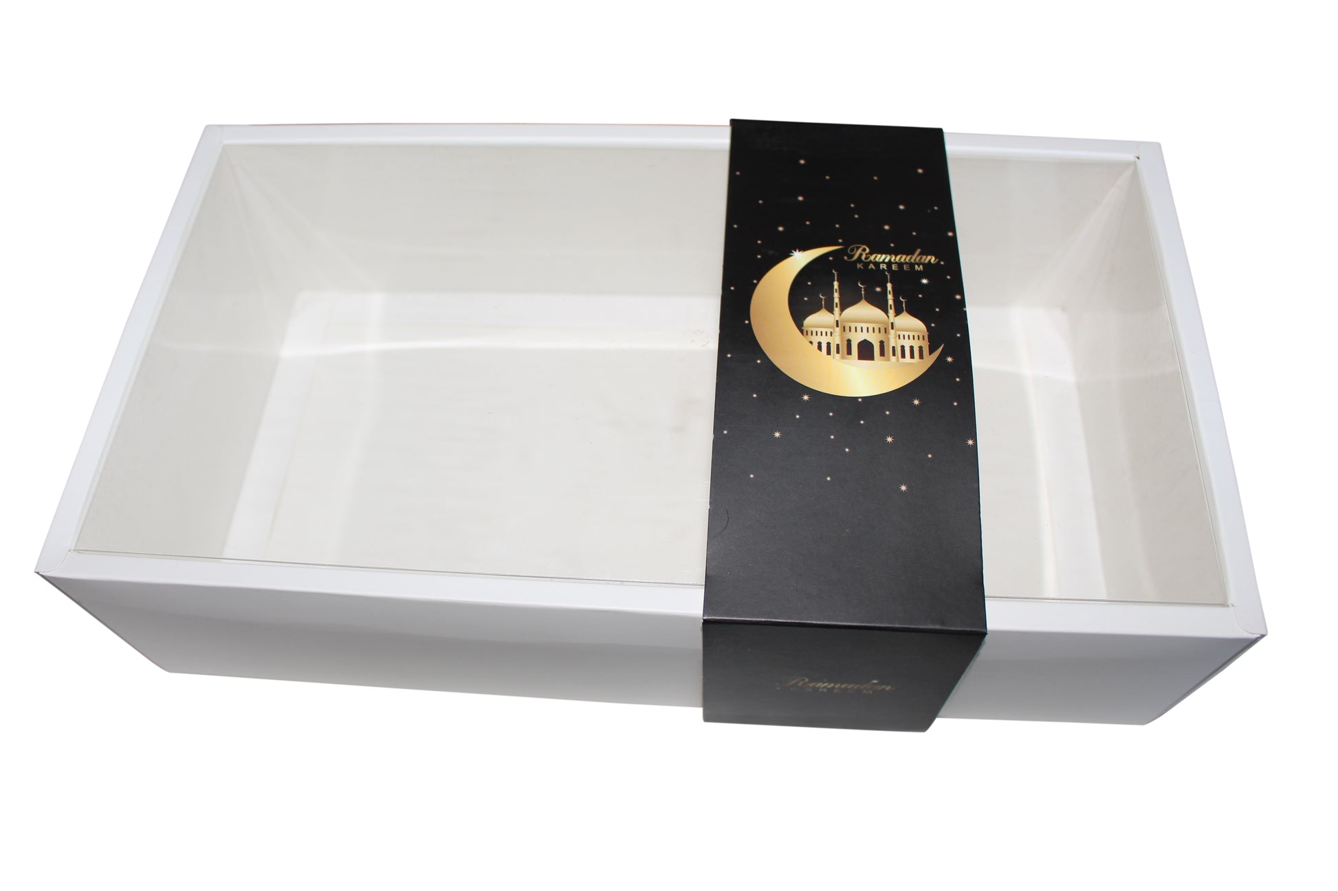 Large Clear lid White border box with Black Ramadan Kareem Sleeve