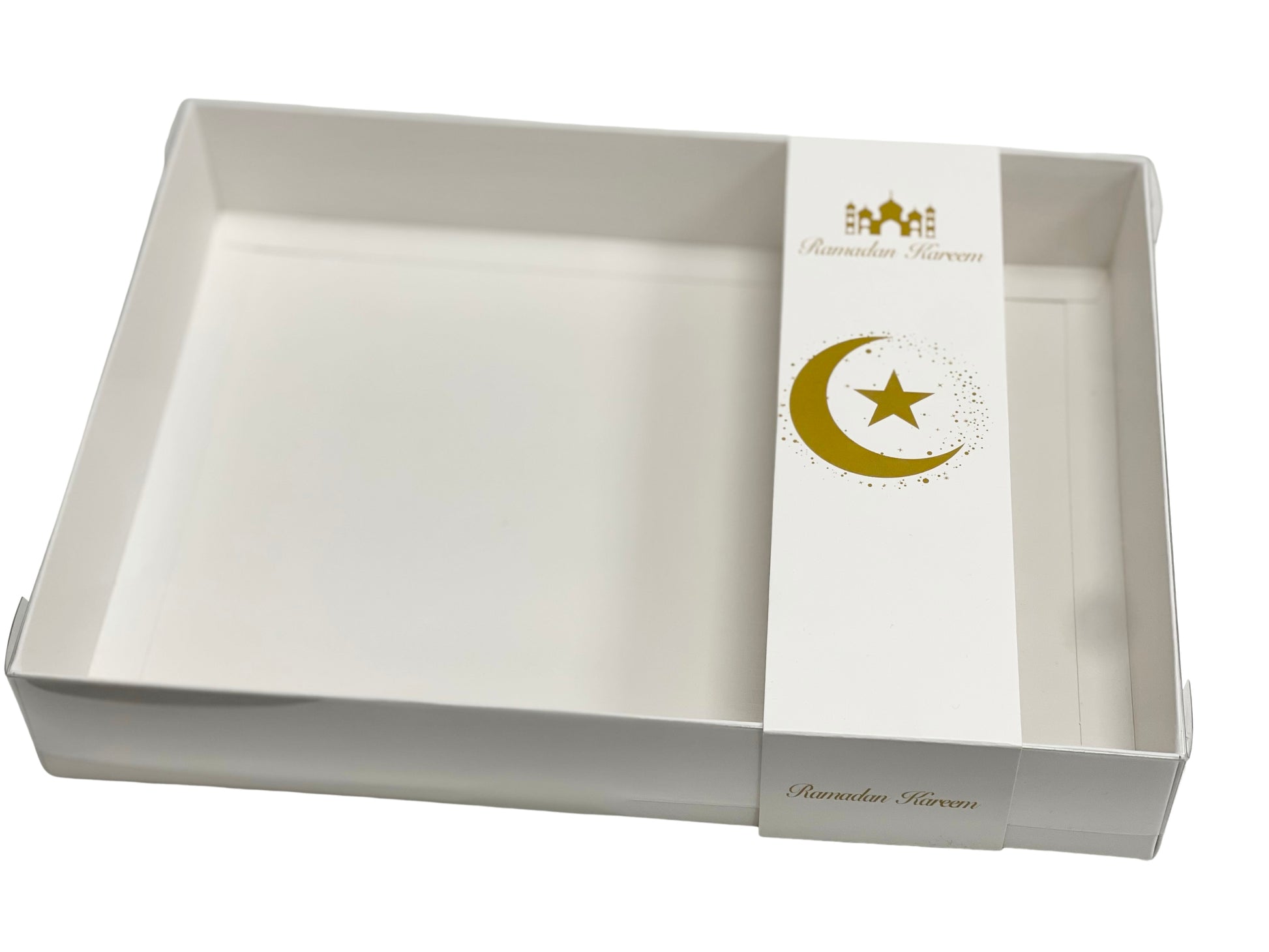 Clear lid White box with a beautiful Ramadan Kareem sleeve