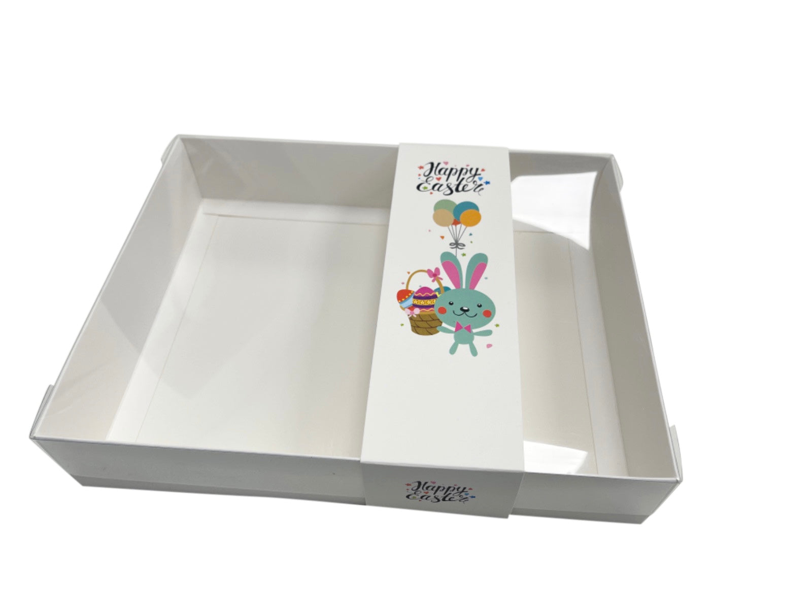 Clear lid White box with Easter bunny & Easter egg basket design