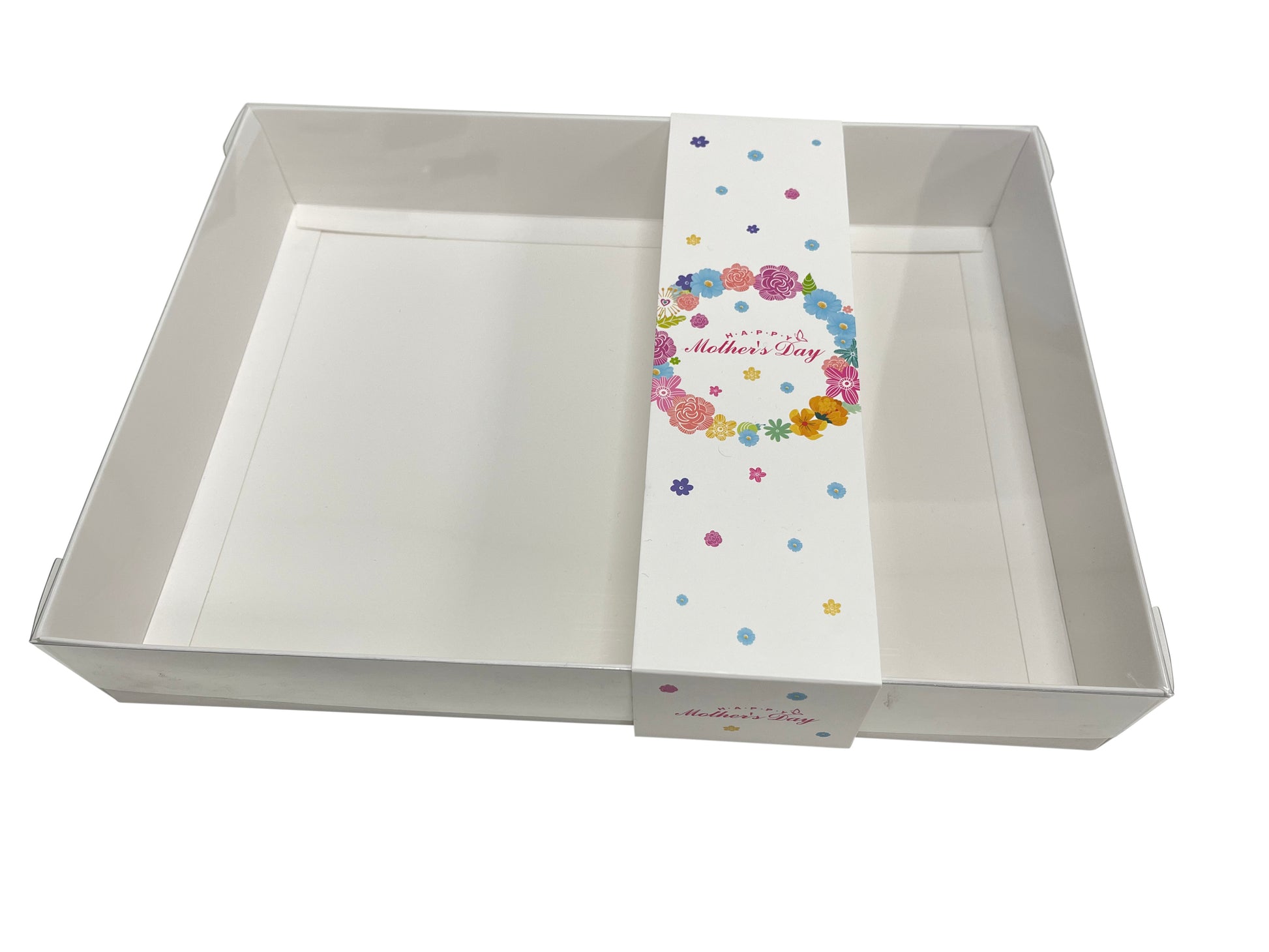 Introducing our Clear Lid White Box adorned with a beautiful floral Mother's Day sleeve – an exclusive and elegant choice for your special celebrations.