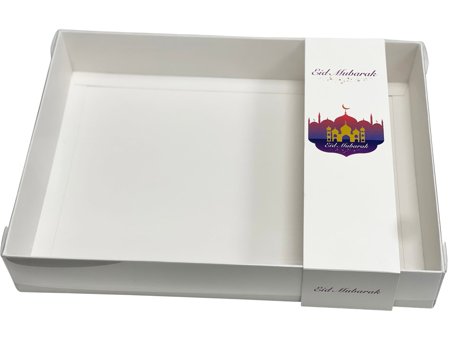 Clear lid White box with beautiful Eid Mubarak sleeve