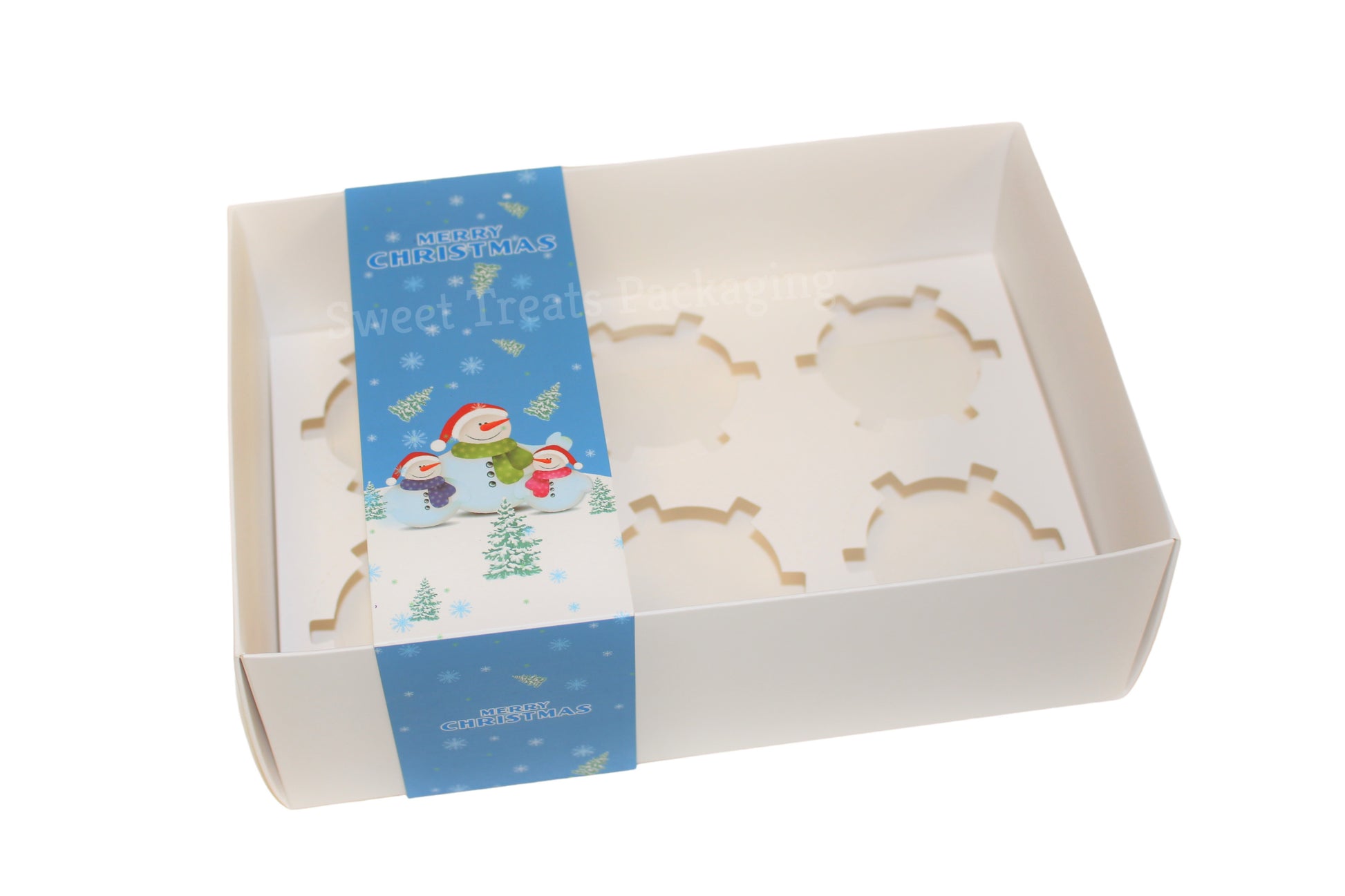Add a festive touch to your packaging with our exclusive Clear Lid White Box, featuring a unique Blue Christmas sleeve, available only at Sweet Treats Packaging.
