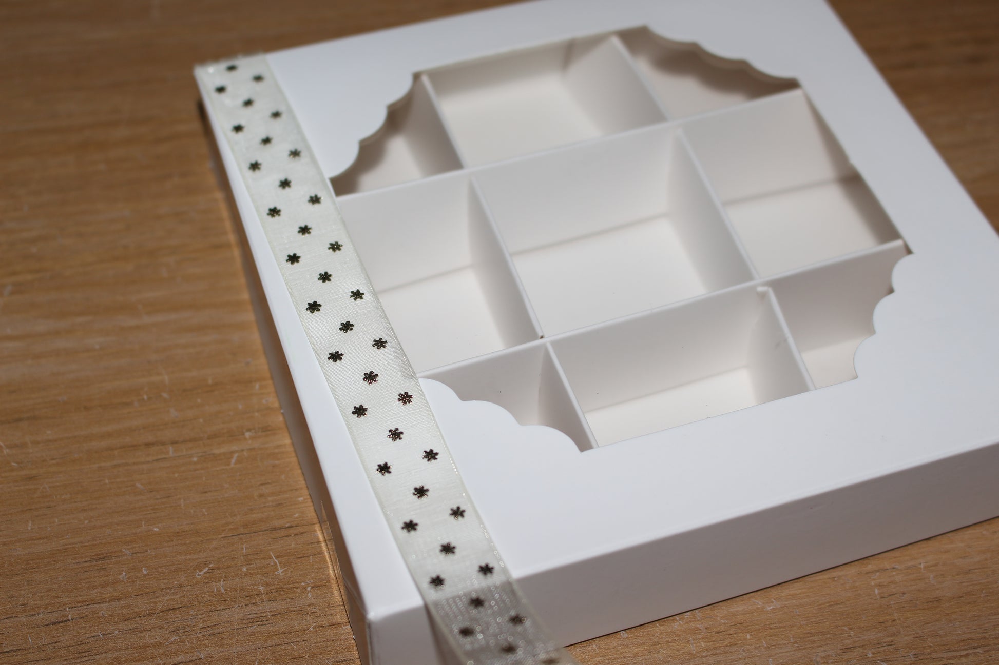 - Snowflake-patterned ribbon – perfect for holiday-themed wrapping.