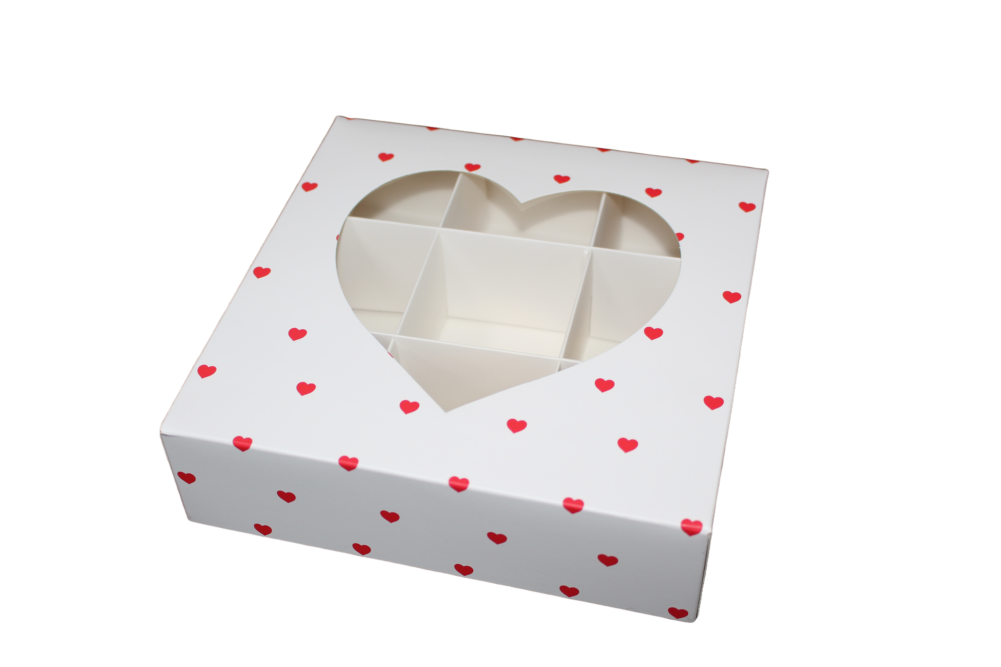 Enhance the presentation of your treats with our exclusive White with Red Hearts Window Boxes – a perfect choice for gifting or displaying your delightful creations.