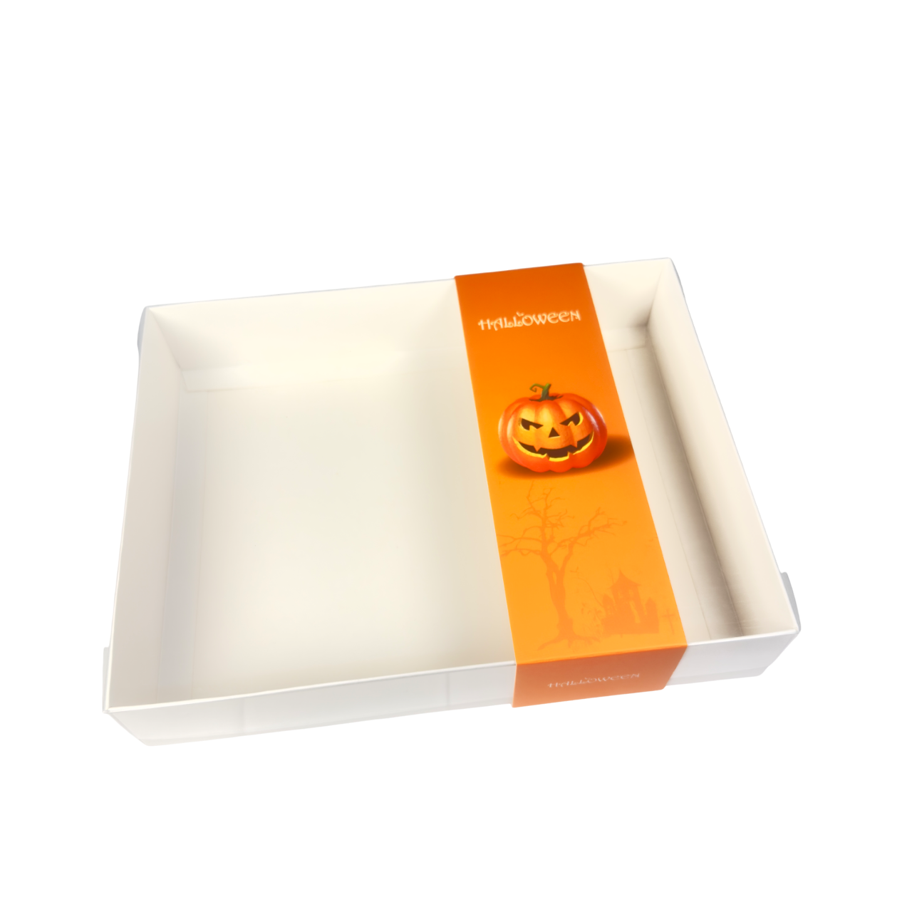 Show off your sweet creations with our exclusive clear lid treat box with Pumpkin design sleeve, available only at Sweet Treats Packaging. Choose from a bright orange base or a classic white base to suit your seasonal style – perfect for biscuits, cookies, cakes, cupcakes, brownies, chocolate strawberries, sweets, and more.