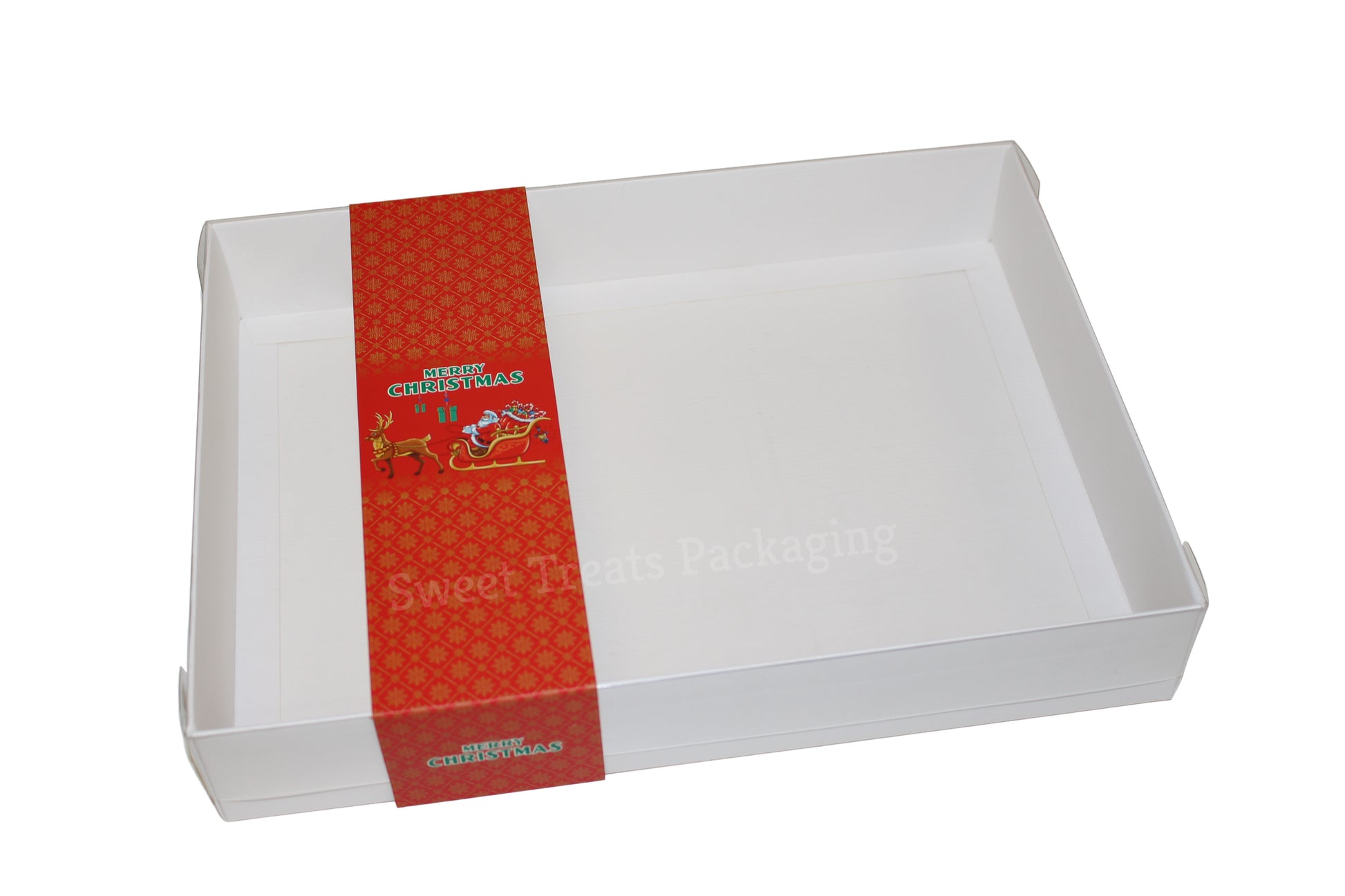Clear lid box with unique Red Christmas sleeve