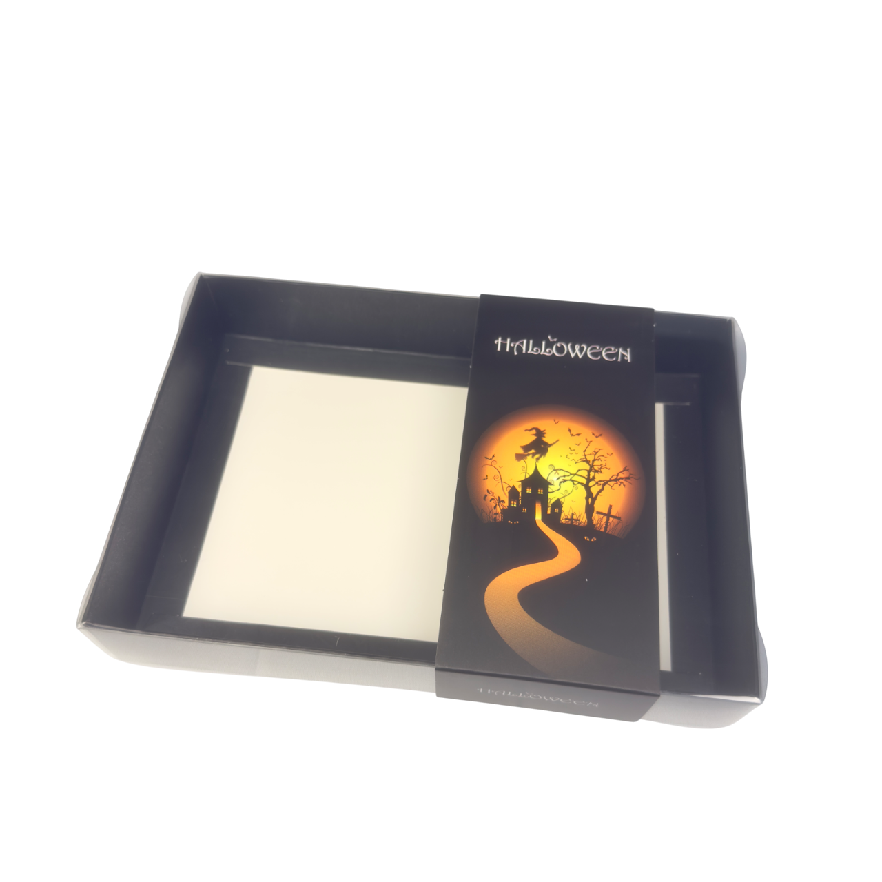 Make your treats stand out this spooky season with our exclusive clear lid box with Haunted House design sleeve, only at Sweet Treats Packaging. Choose from a black base or white base to suit your theme – perfect for biscuits, cookies, cakes, cupcakes, brownies, chocolate strawberries, sweets, and more.