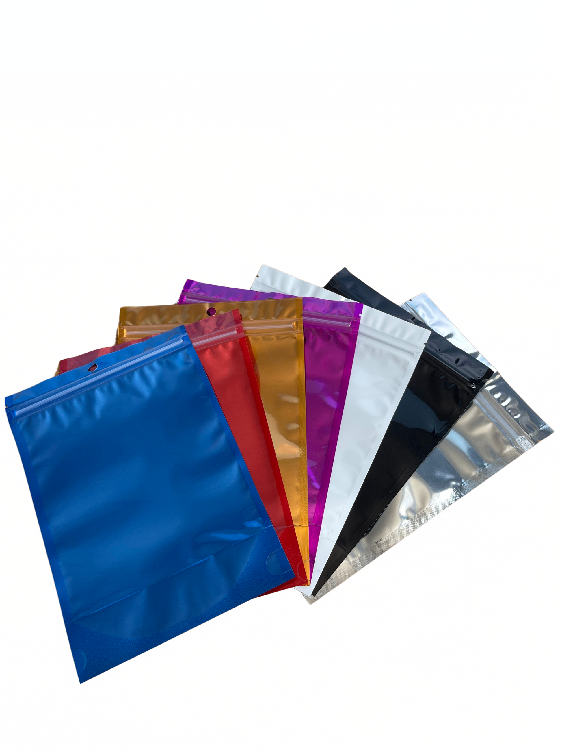 Our Resealable Food Safe Sweet Bags come in two main sizes to suit your needs. The first size measures 15x22x4cm, accommodating up to 500g of sweets, while the second size is 20x30x5cm, perfect for up to 1kg of treats. Both sizes are available in seven striking colours: Blue, Purple, Black, White, Silver, Red, and Gold. Each bag features a transparent clear front, allowing your delicious creations to shine.