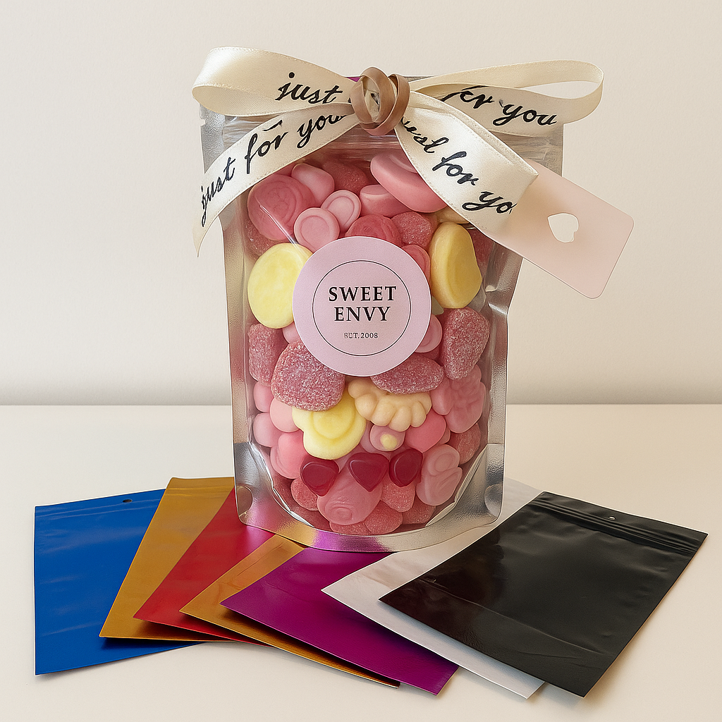 Elevate your packaging game with our Resealable Food Safe Sweet Bags. Order now and showcase your treats with style and confidence.
