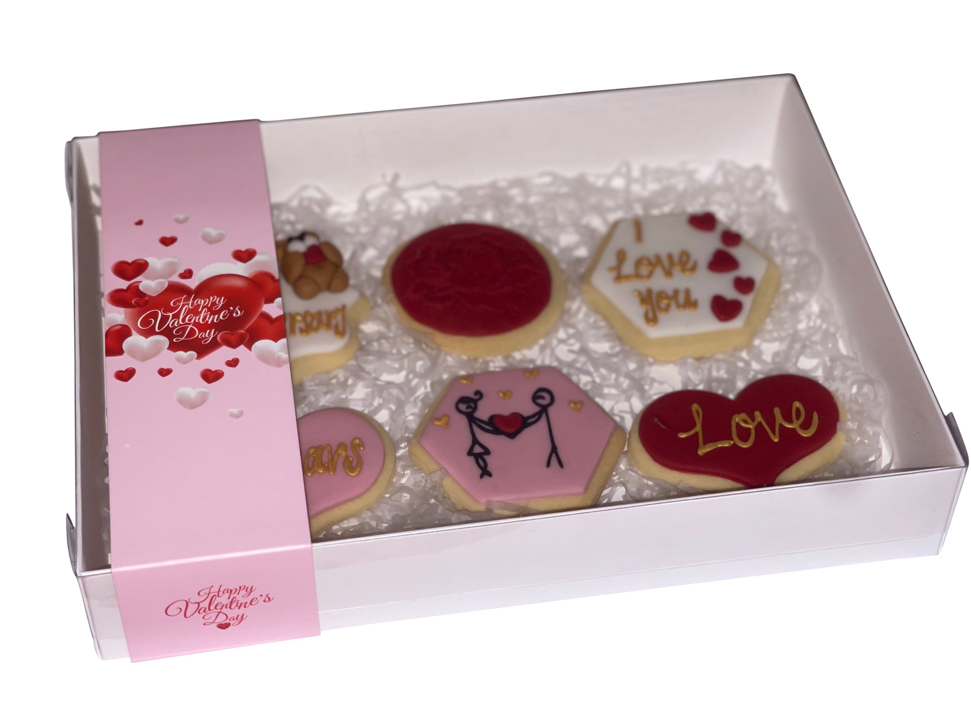 Please note, the pictures provided are for illustration purposes only, showcasing the potential of your presentation. Elevate your Valentine's Day celebration with the exclusive Clear Lid White Box featuring a Beautiful Valentine's Sleeve from Sweet Treats Packaging.
